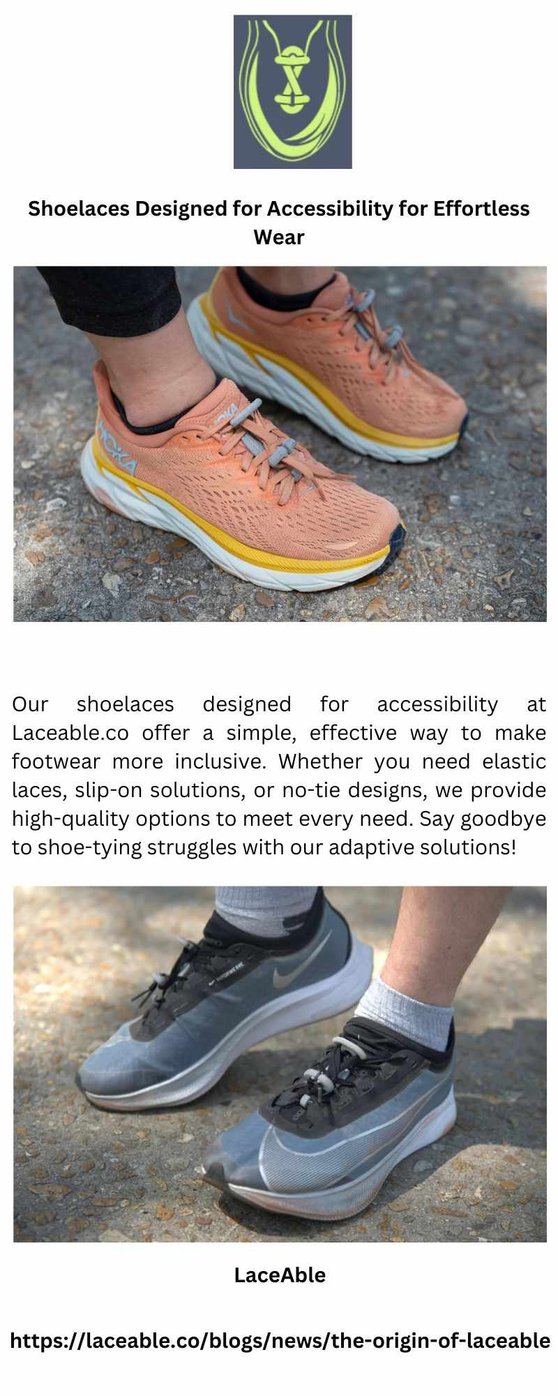 Our shoelaces designed for accessibility at Laceable.co offer a simple, effective way to make footwear more inclusive. Whether you need elastic laces, slip-on solutions, or no-tie designs, we provide high-quality options to meet every need. Say goodbye to shoe-tying struggles with our adaptive solutions!